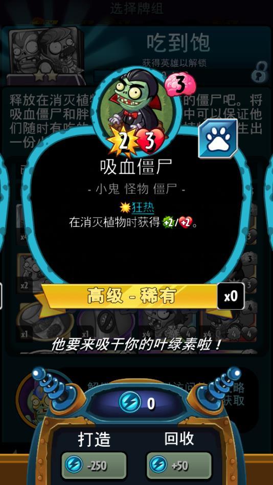 那么在了解了技能的能力和作用之后,僵尸系列中带有狂热技能的单位是相对较多的,但是小编只给大家介绍两个比较强力的战斗单位。一个是吸血鬼僵尸,该单位在基础属性上比比较的不错,自带狂热的基础技能。最恐怖的是吸血鬼的被动能力,在消灭一株植物的时候会获得2点血量或攻击力的加成。这个属性在叠加方式上是没有限制的,再加上狂热的效果,可以说植物方如果不较好控制的话,吸血鬼是可以直接成长为一个大BOSS的。