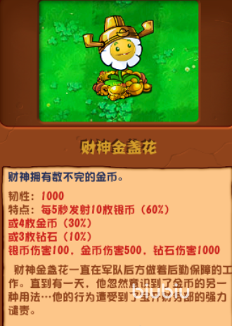 在深入解锁攻略之前,首先需要了解财神金盏花的特点。作为一款特别的植物,财神金盏花每隔五秒钟就能洒出一些钱币进行攻击。这些钱币不仅能对僵尸造成伤害,还能为玩家带来额外的金币收入。具体而言: