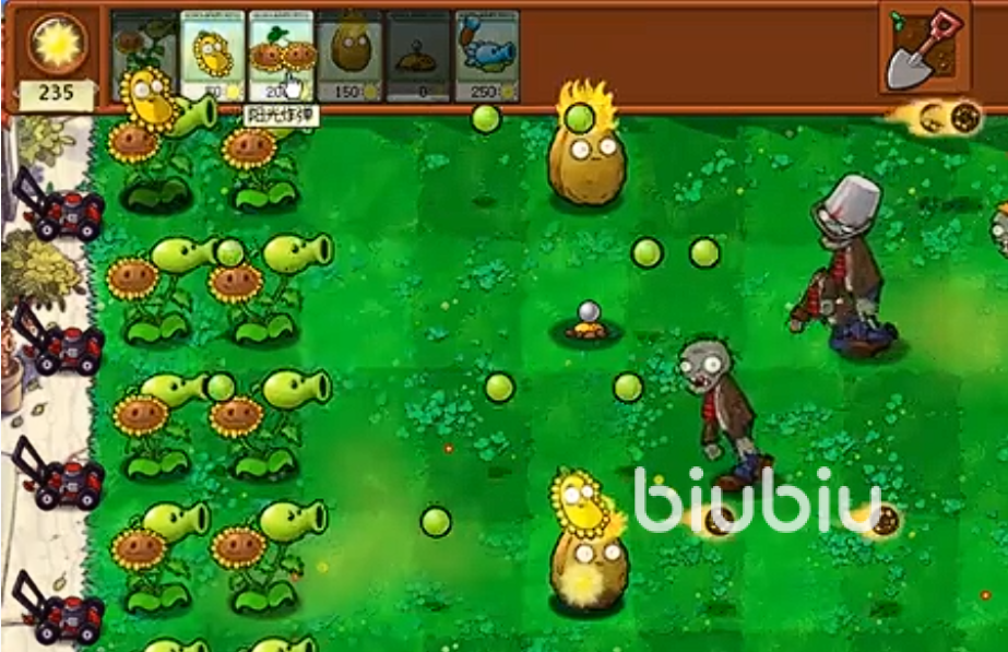 大家都应该知道阳光是非常重要的资源,没有阳光的情况下什么厉害的植物都没法种植,所以开局的阳光一定要种植生产阳光的植物,比方说阳光向日葵,这是一种非常好用的植物,基本上每关都是需要携带的,它能在25秒的时间内生产出40点阳光,并且120秒后它还会成长多产生35点的阳光给玩家使用,建议关卡中都种植一到两排以保证阳光的充足。