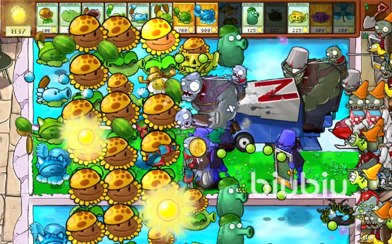西瓜香蒲的缺点就是上面提到的,投掷出的子弹在空中的滞留时间比较长,而且是弧线型的,所以在打撑杆跳僵尸等更具机动性的僵尸时很容易打不到目标,而坚果墙可以让进攻的僵尸们在原地停住,为西瓜香蒲提供更为方便的投掷攻击机会,如果想要效果更好的话可以把坚果墙的升级版搭配上,能坚持更多时间并且对僵尸造成更多伤害和阻碍。