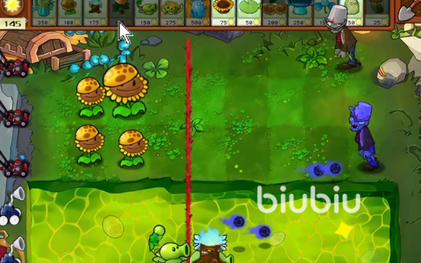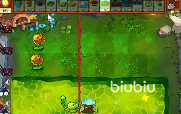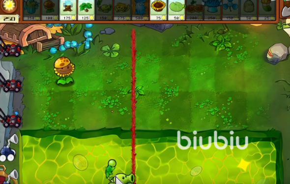 首先你得守四条陆路和两条水路,这就得把战斗力分散到各个地方去。再有就是,不能让敌人越过那条红线,一过红线,敌人就会变得更强,那可就麻烦大了。所以从一开始,我们就得拿出真本事,把敌人牢牢地挡在外面。一开始进游戏,先种个向日葵,攒点阳光。然后赶紧用星星地雷,这个植物虽然贵点,但是物超所值啊。它自己能攻击还能爆炸,而且不止一次,前期用来对付敌人简直完美。敌人很快就来了,一开始他们会从上面三条路进攻。这时候,我们得在中间两条路上种上星星地雷,上面的路因为种植点数不够,就得动动脑子了。可以用滚动西瓜,或者豌豆加上火焰坚果的组合,这样也能抵挡一阵子。