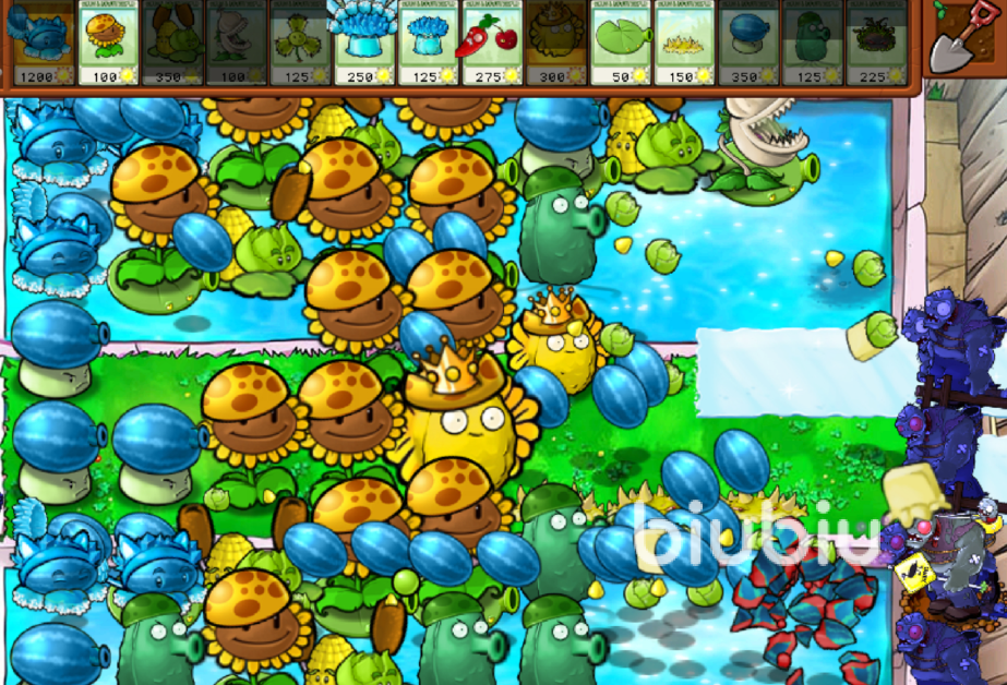 这样的数量在前期低难度关卡时面对低强度僵尸时还勉强能够应对,一旦进入游戏后期,僵尸强度随之增加后,就完全无法通关了。