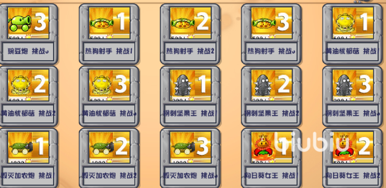 首先需要明确的是,金卡植物的获取方式与普通植物的获取方式不同,普通植物只需要通过挑战并通关普通关卡就可以获得, 但金卡植物需要玩家们完成对应的挑战关卡。获得金卡的第一个步骤是来到植物大战僵尸杂交版的游戏主页面,在主页面中找到【挑战模式】并点击进入。接着玩家们可以在跳转到的页面之中看到非常多与写着植物名字的关卡,大家可以按照上面所标注的金卡植物名字对自己想要获得的金卡植物进行挑战,通关后就可以成功获得该金卡植物了。