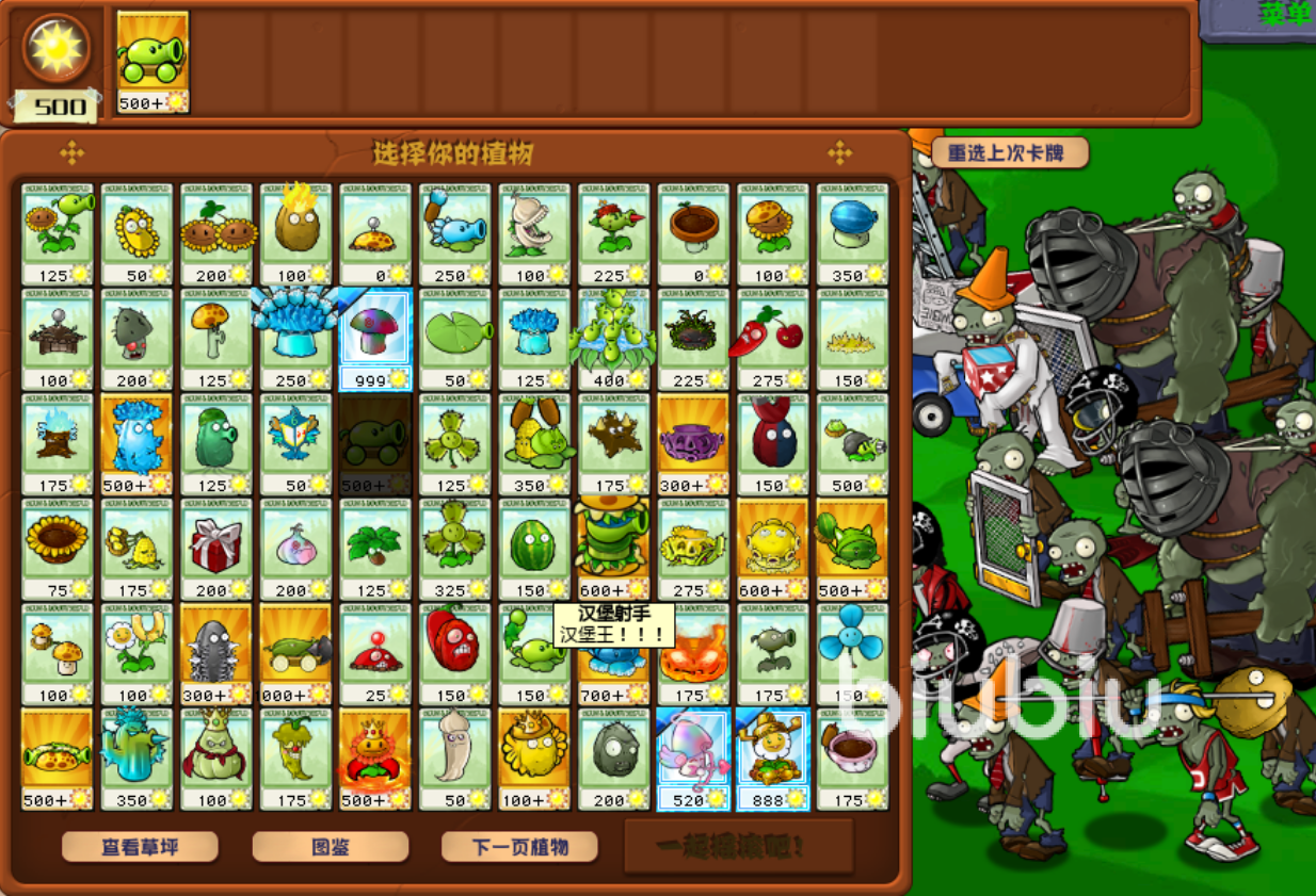 1、开始几波用豌豆香蒲和蓝火炬就可以渡过,等僵尸数量多起来了后就种上豌豆许愿池来提升输出。后面阳光多起来了,就慢慢把豌豆炮和机枪都给换上。