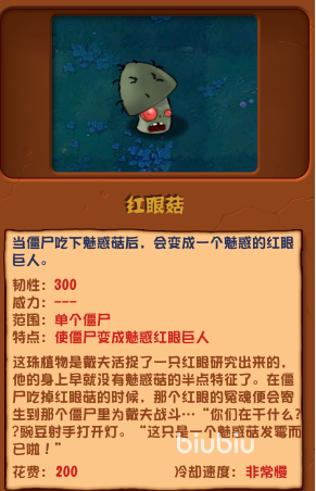 红眼菇的属性也相当出色,它的韧性高达300,意味着它能够承受一定的攻击而不被轻易摧毁。然而,它的威力并没有具体的数值,因为它并不直接攻击僵尸,而是通过转化来发挥作用。它的作用范围是单个僵尸,也就是说,每次只能转化一个僵尸。虽然它的花费只有200阳光,但冷却速度却非常慢,这意味着在战斗中你需要合理规划它的使用时机。关于红眼菇的起源,还有一个有趣的背景故事。据说它是由戴夫在一次冒险中活捉的一只红眼怪物研究出来的。在研究中,戴夫发现这只红眼的冤魂有着强大的能力,能够控制其他生物。于是,他利用这种能力,结合魅惑菇的特性,创造出了红眼菇。当僵尸吃掉红眼菇时,红眼的冤魂就会寄生到那个僵尸体内为它所用。