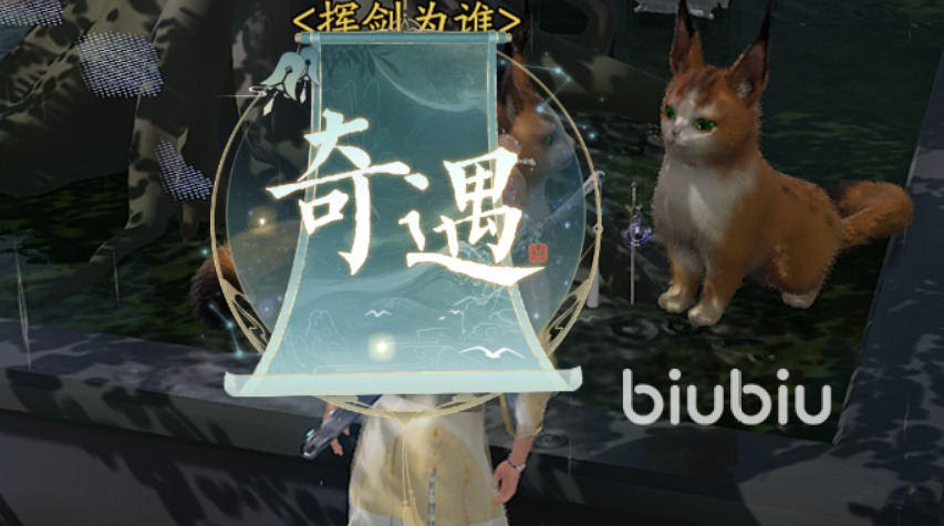 树下藏宝,坐标(15588,17331),在花树那里使用“抚摸”动作去摸猫咪。