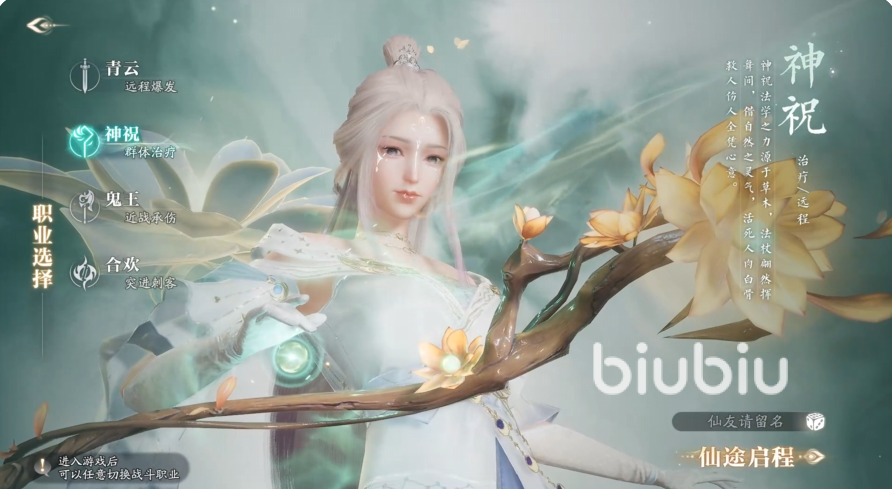 神祝是游戏里奶妈型的职业,是非常重要的辅助,在队伍当中可以保证大家的续航状态,同时也提升队伍整体的生存能力,尤其是在副本当中作用非常重要。普通攻击就是对敌人造成仙法伤害,第三次攻击的时候还会增加伤害,还可以回复3点神灵值。花舞技能具有控制能力,增强所造成的伤害;