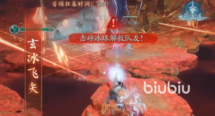 然后boss的血量被消耗至40%及以下的话,那么就会进入第三阶段。这时boss会直接喷三个球,随机冻住三个人。一旦三个人都被冻住的话,那么其他人需要打破冰球就会浪费不少时间。这时候鬼王一定要卡好时间,然后及时地将冰球抬起来。最后在一起输出,即可击败它!