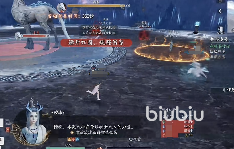 冰夷的攻击带有寒冷效果,可能会使角色行动迟缓或冻结,因此保持移动非常重要。玩家们在战斗过程中,应尽量避免同时受到多个技能的打击,毕竟这会导致大量生命值损失。最重要的是,对战期间玩家应与队友保持沟通,特别是在需要集中攻击或分散躲避的时候。如果团队中有辅助职业,如天音寺和尚,他们可以提供额外的治疗和增益效果,提高队伍的战斗效率。