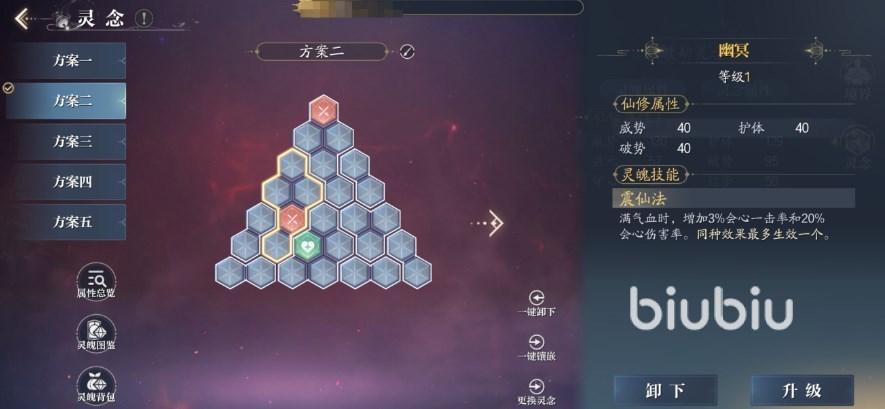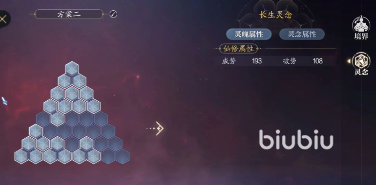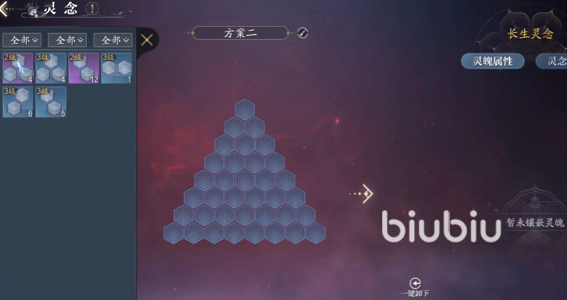 灵念有点像是传统网游中的符文,有稀有度之分,分别是金、紫、蓝三种品质。目前紫色品质的性价比是最高的,大家可以考虑先给自己整一套紫色的灵念。