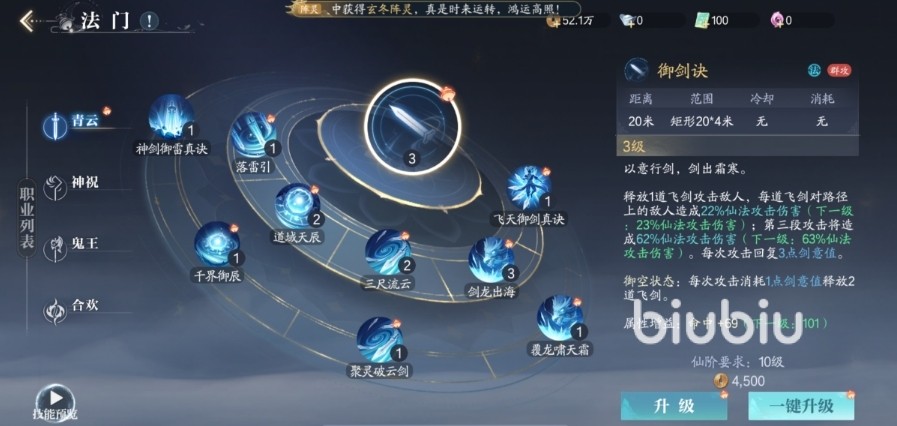 d. 法门升级。这个游戏中虽然说分为了4个职业,玩家能够有所选择,其实在实际对战中玩家能切换职业,特别是在队伍组队情况不理想的状态下,这个设计很赞,但是对于玩家来说就是很消耗金币和升级道具来对技能升级,玩家如果追求战力的话需要在这个地方有所投入。