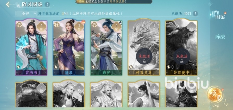 a.阵灵。阵灵有分固定阵灵和限定阵灵,限定阵灵通过充值获得,集齐一定数量的限定阵灵能够开启阵法,再次提升属性,而且阵灵在后续可能会以队友的方式和玩家一起刷副本,所以在阵灵玩法上氪金度将会很高。