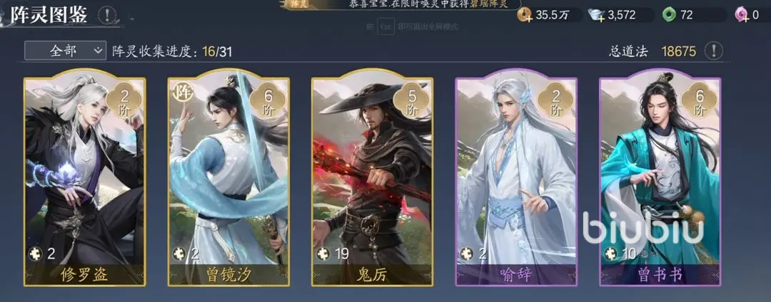 举例来说几个阵灵,首先是萧瑟,该阵灵能提高角色的灵力储备效果,利用该阵灵的特性就能有效提升角色的输出能力;搭配技能伤害高的角色能快速的击溃敌人。第二个九曲,他的能力是可以提高佩戴者的治疗能力,就非常适合辅助型,尤其是奶妈角色搭配使用,能有效提高奶妈的治疗能力。