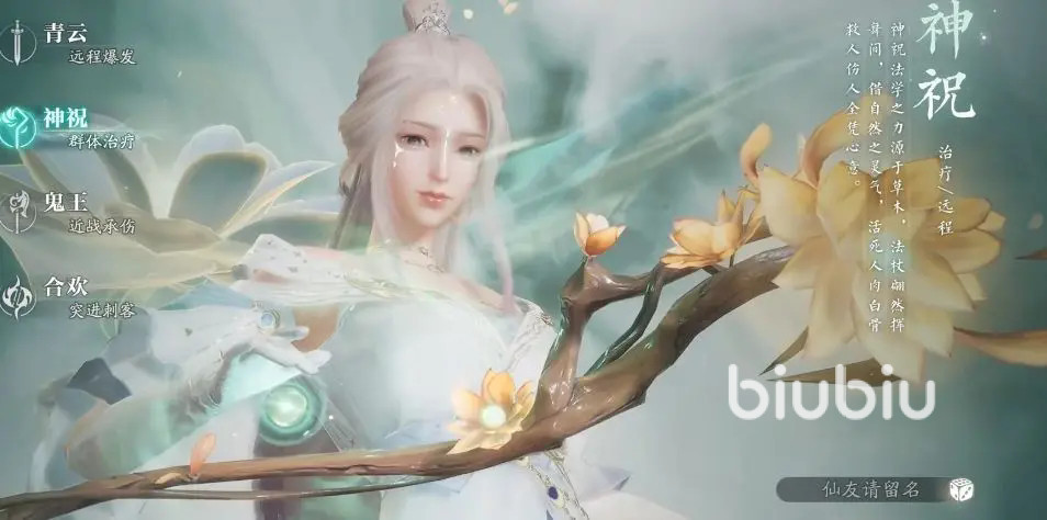 神祝的核心技能是【竹影界】和【蓬莱玉拐】,竹影界用来保护队友,抵抗敌人的攻击。蓬莱玉拐,是群体复活技能,可以帮助群体提高续命能力,有团队一起玩诛仙2手游的玩家,一定要安排人高这个职业。