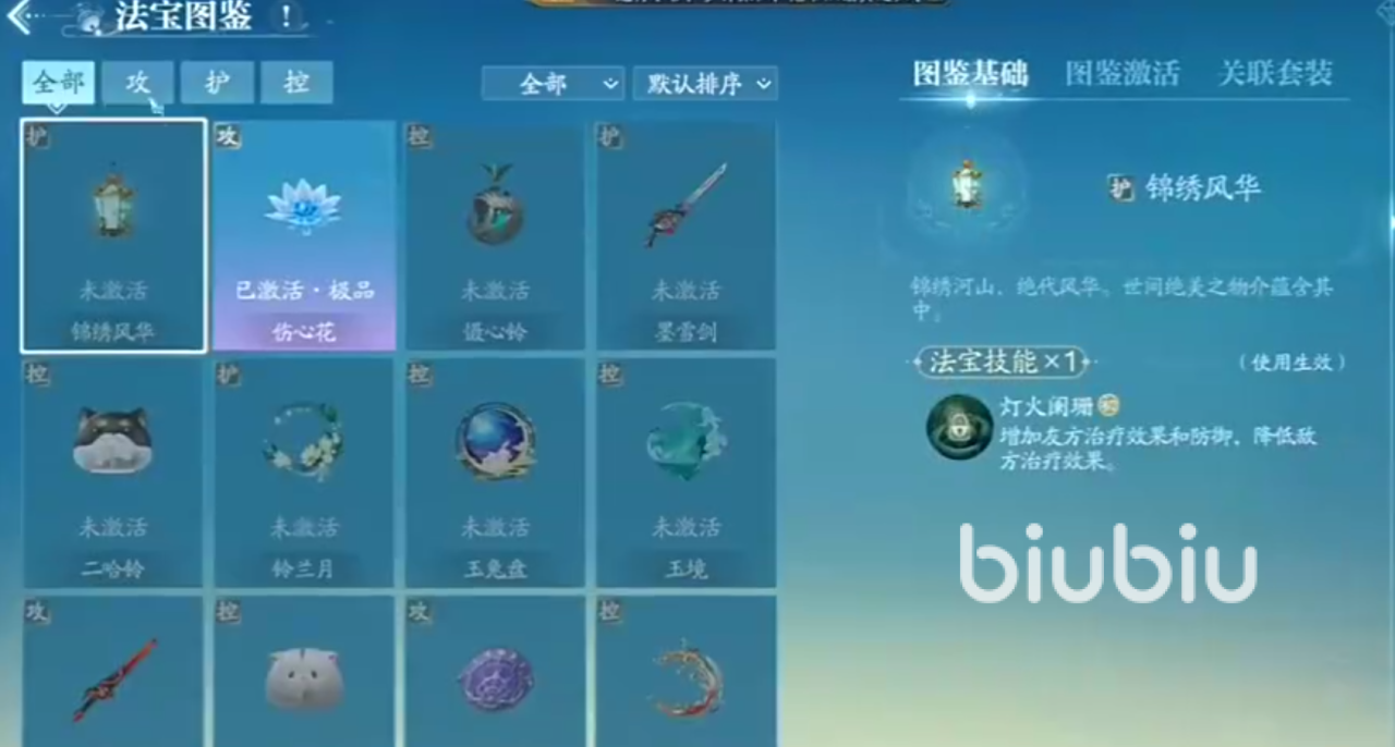 法宝能提升战斗力,总共有3种类型,分别是攻击型、防御型和控制型,不同类型的适合不同职业和玩法,已经获取到的法宝可以在图鉴中查看激活,每一个法宝最高能有6条属性加成,以及独有的技能效果。