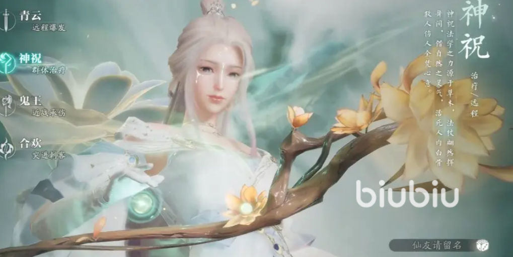 在初始就有鬼王、神祝、合欢和青云这四大职业摆在大家面前,鬼王定位是能打能抗的战士,可以在战斗中变身为明王来免疫所有的控制,适合喜欢在前方作战的新手来选,神祝就是奶妈,他不管是功能性还是奶量都非常不错,是团队最坚实的后盾,缺点为单挑不强,适合想要辅助他人的;