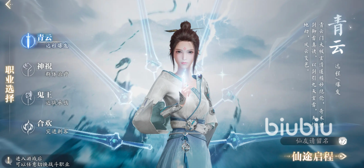 该职业的人气也一直居高不下,目前的发展路线也有两个偏向。其一是剑青云,其二则是雷青云,2种线路各有特色,剑青云的技能招式之间搭配很重要,能形成强势的连击效果,可灵活自如的使用各种技能,攻击时身形灵活,准确找到敌方破绽,让敌人承受巨大伤害;雷青云的操作更简单易懂,技能也比较具有特色,更善于打出远距离瞬间的爆发,主要针对单体的爆发力很强,能在较远的地方就对敌人发起猛烈攻势,处于安全位置压制对手。