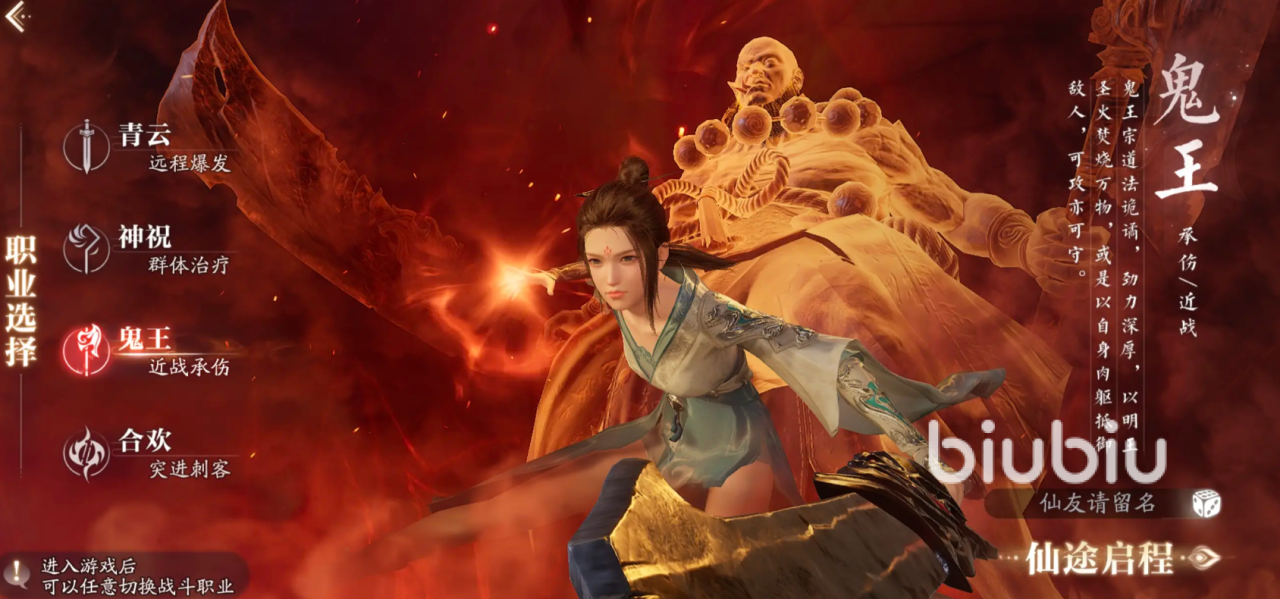 而且如果选择该职业,可以有两条不同的线路发展,一种是偏向于坦克的,鬼王具有厚重的护甲,生命值也比较高,在战斗时的生存能力是很强的,可毫不畏惧的站在前方,担任队伍吸引火力,承担伤害的责任;在一些未知性比较大的野外副本中,坦克鬼王都是非常受到大家喜欢的存在,也是组队中很重要的角色。还有一种线路则是煞鬼王,他们的战斗机制独特,能在战斗中不断的积累怒气,达到变身的效果,进而爆发出超强近战效果,但是这种线路的他们承伤能力不高,偏向于专注输出,能通过增益获得更多效果,反击效果也比较强力。