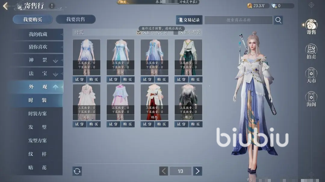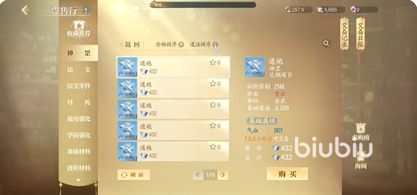 如果有其他玩家看中了摆摊售卖的物品,可在线查看物品以及价格。这个交易也比较简单,直接去主城的摆摊区域,或者通过商城进入摆摊,选择出售,将物品放在摊位,并设置好价格就行,普通的物品都是有设定价格的区间的,珍品定价比较自由。