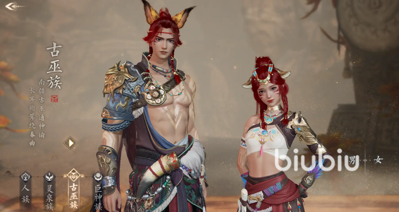 古巫族生活在瘴气缭绕的南疆之地,他们时代守护土地,是自然的精灵,他们的外貌为兽耳长尾,特殊的能力是幻化为各种灵兽,靠着矫健的身形,在山川之间之间探索,解控时会唤醒体内沉睡的灵兽力量,挣脱一切的束缚。