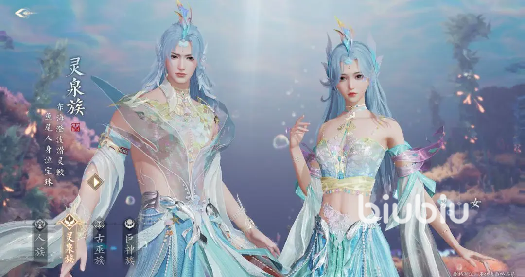 灵泉族生活在东海之滨,在碧波荡漾水天一色的金色中生活,她们擅长音律,纺织鲛绡,拥有龙族的血脉和力量,同时这个种族的寿数非常的绵长。同时该种族的捏脸,也是非常的贵气,能选择的服饰鳞饰都非常的华丽,自定义的鳍饰、鳞片也都和彩绘一般精致,搭配后流光溢彩。