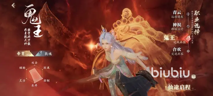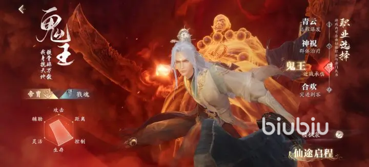 鬼王也是很推荐平民入手的职业,第一点就是他们的定位比较灵活,可作为拉仇恨抗伤害的坦克使用,同时也是不错的输出控制选手,是目前几大职业中的“六边形战士”。且他在作为坦克吸引火力时,其实输出能力也不俗,还拥有比较核心的变身效果,化身“明王”状态,能改变重力场效果,处于范围内的敌方行动都受到很大限制,还能免疫所有控制,技能特效也比较炫酷,在团队当中可冲锋陷阵,是比较有威慑力的职业。