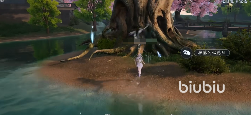 8.隐隐期许,坐标大约(19338,17431)的位置,在池塘中大树所在的位置,树下有一根肉眼看不到的许愿丝,拾取就可以完成了。