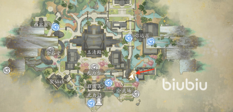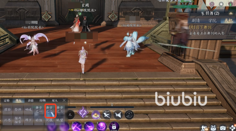 4.长袖善舞,坐标大约(16539,17403)的位置,玉清殿的门口,在玄阙大人的面前做出跳舞的动作,这里选舞步之二。