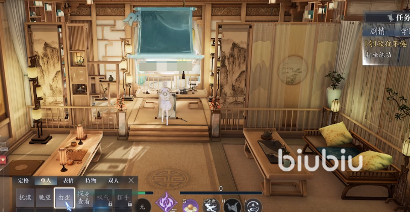 10.孜孜不倦,坐标约(20584,16600),接着上一个奇遇去另一头的走廊,走到尽头,靠着大门点开进入,直走到桌子前面的山海画这里,做出“打坐”的动作。