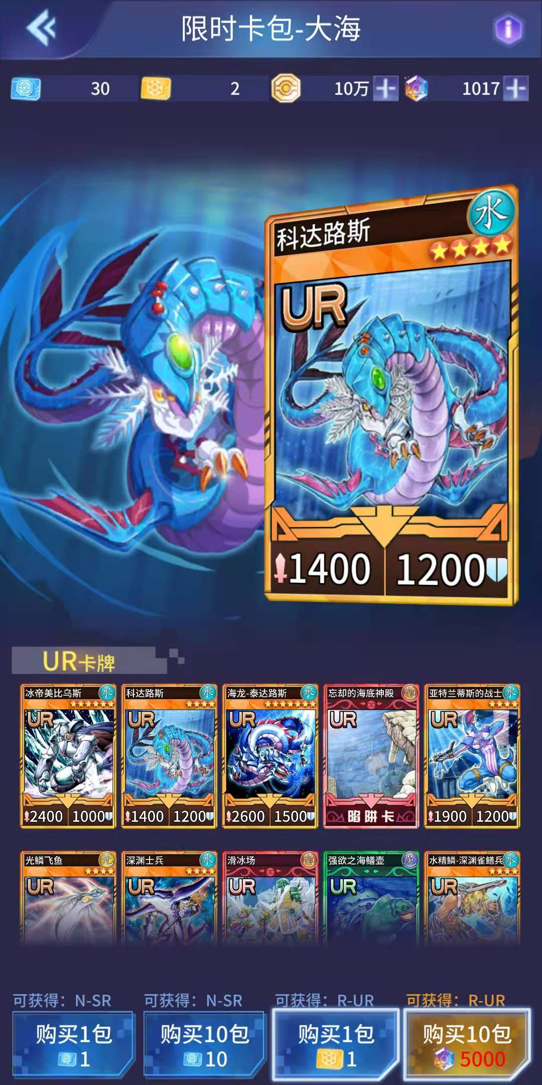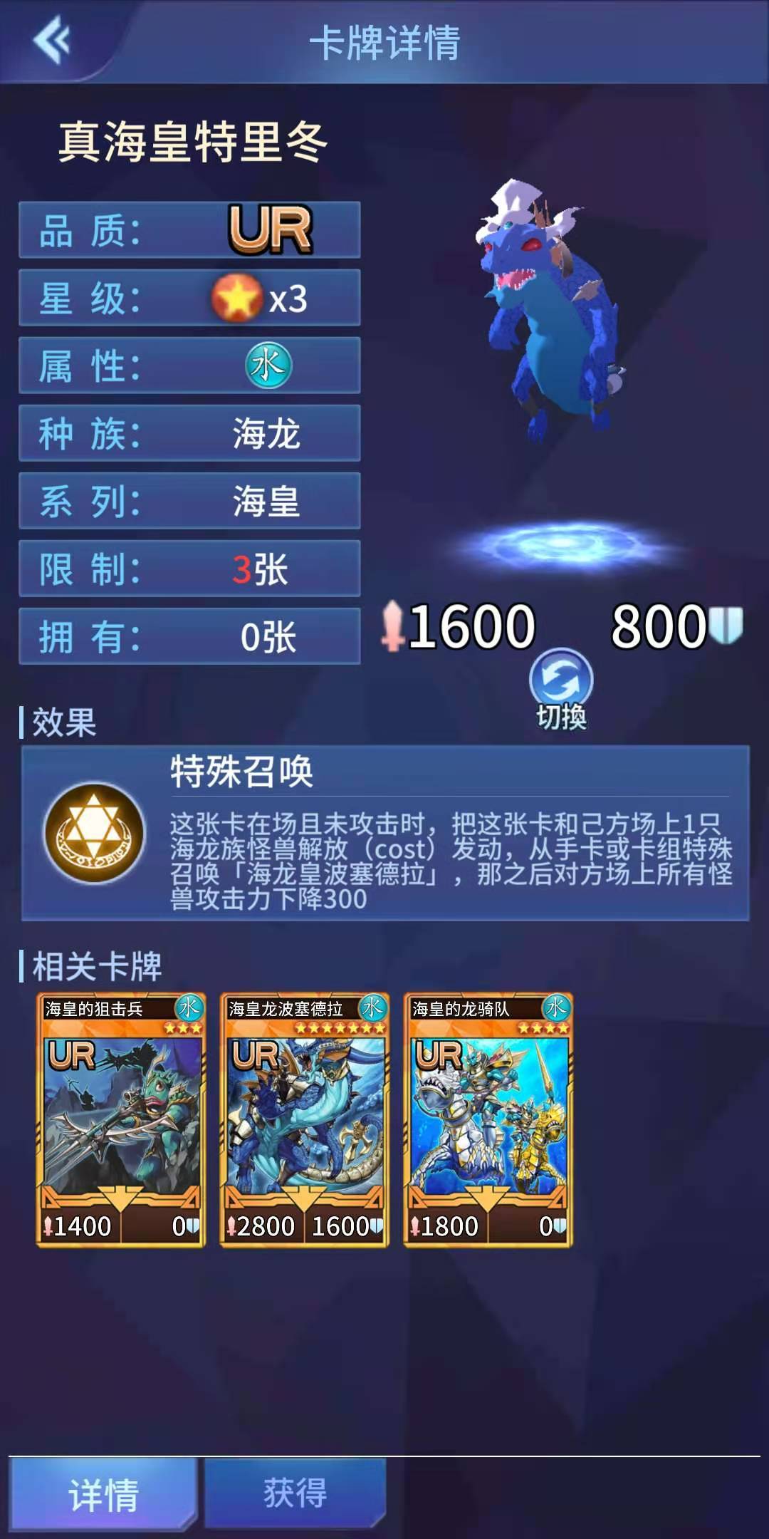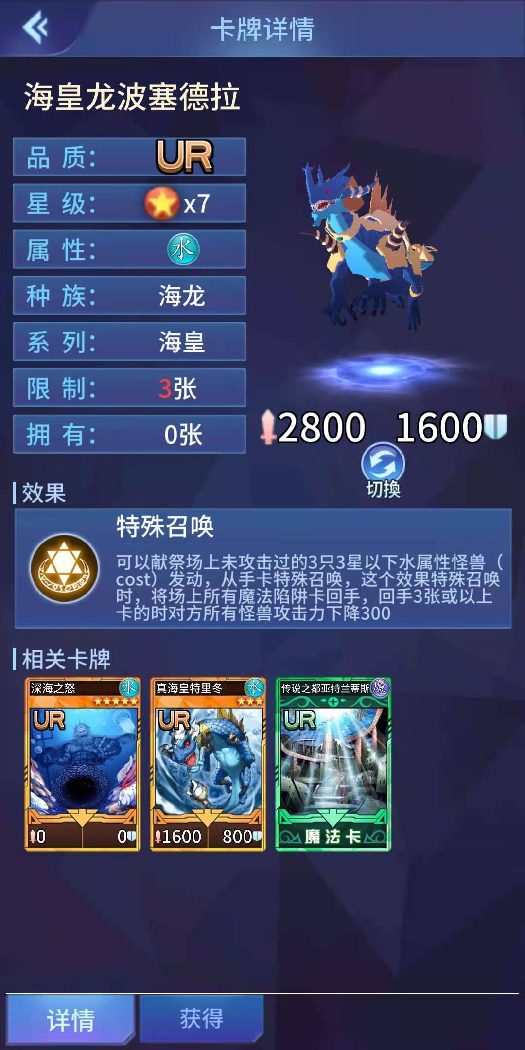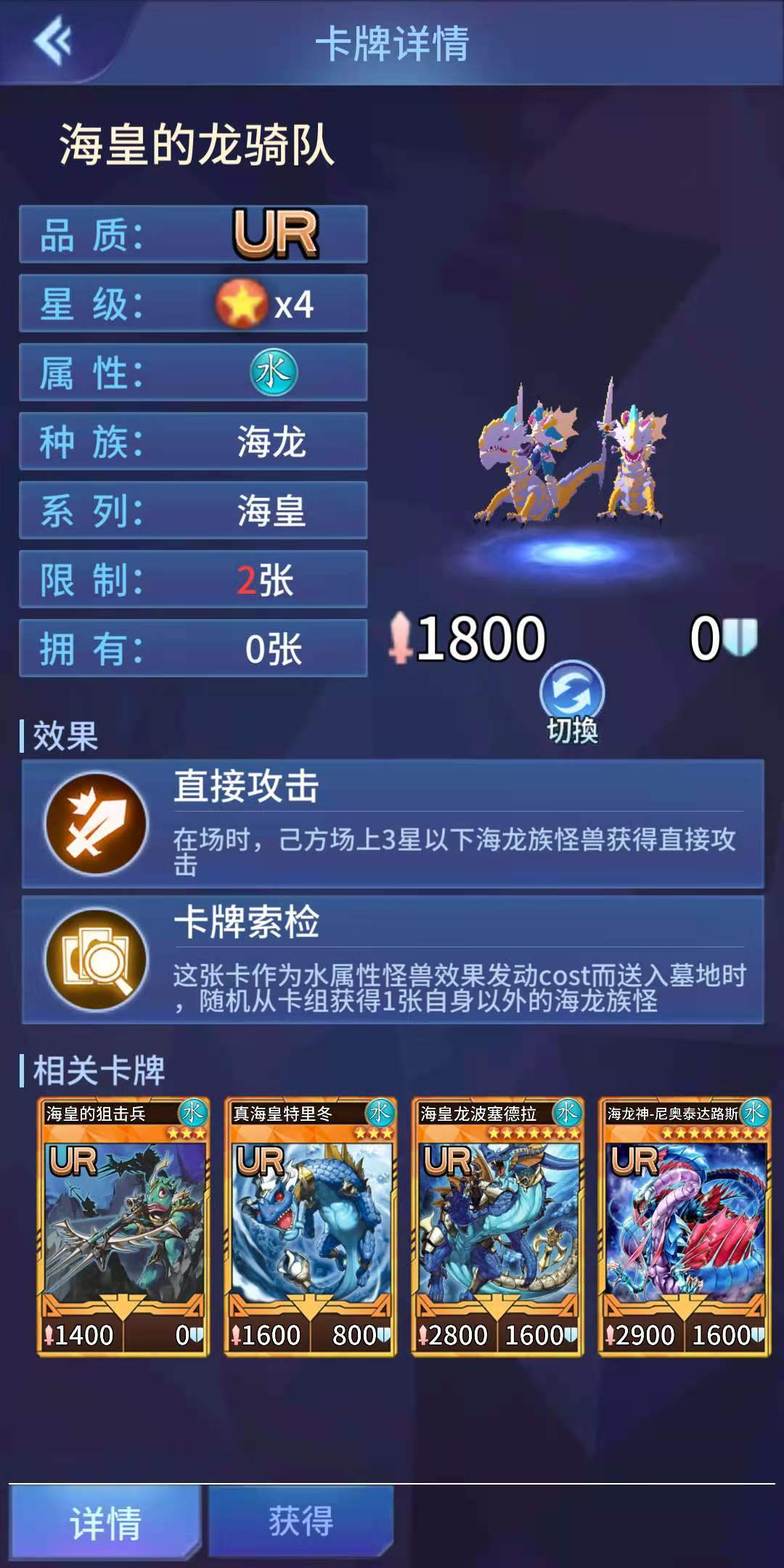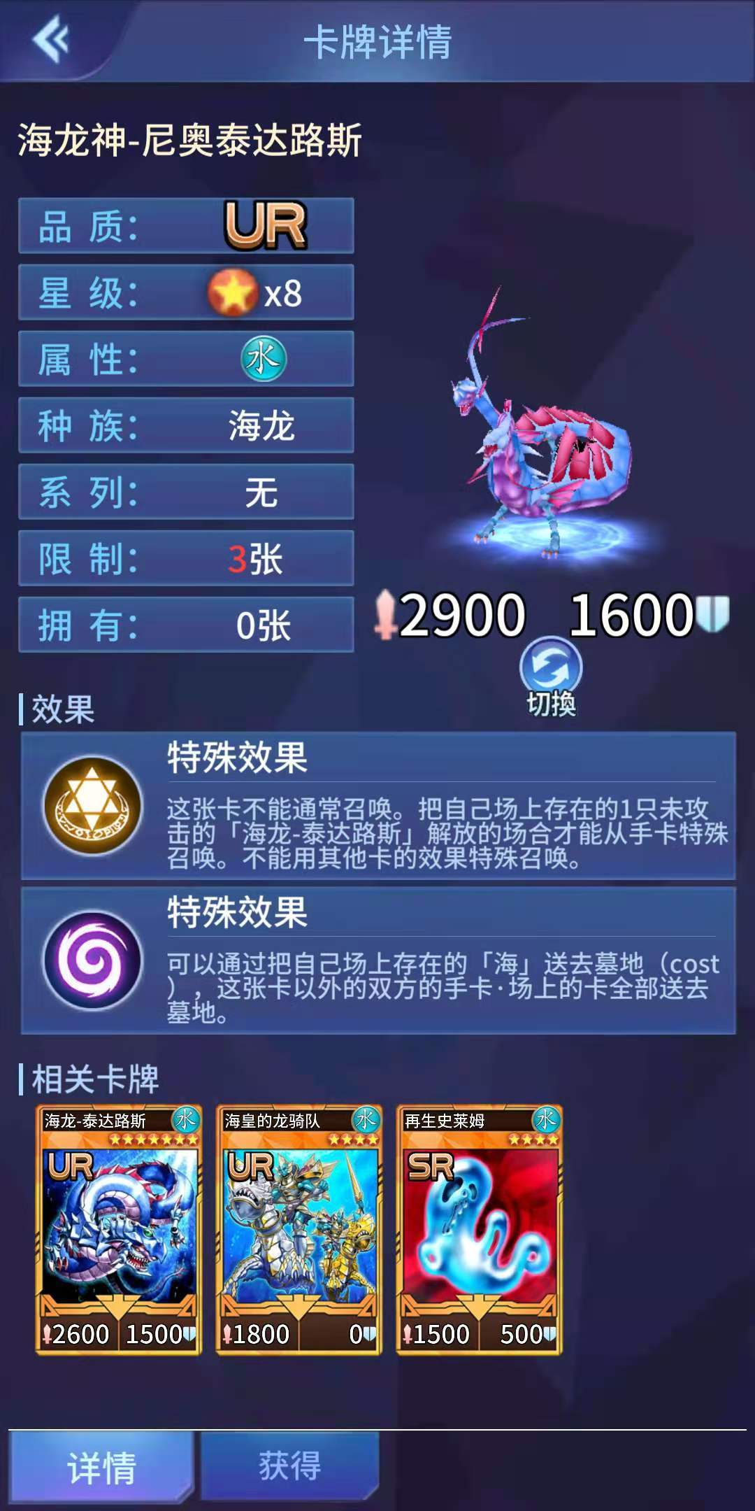 这款游戏中的海龙卡基本上都集中出现在限时卡包-大海中,这个卡包除了海龙卡以外,还有其它和海龙卡搭配的水属性卡牌。海龙卡的关键词是“清场”,能够将敌方或者自己场上的卡牌送入墓地。下面就来看一下海龙卡怎么样。