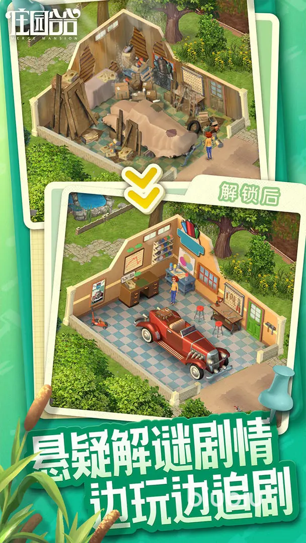 此外游戏会随着小伙伴们的升级慢慢的解锁更多的内容,一开始或许只能合成一些小物件,修复一些小的东西,但是慢慢的就能修复更多的地方,渐渐的完善整个庄园,一路走来会让小伙伴们有非常充实的体验感。