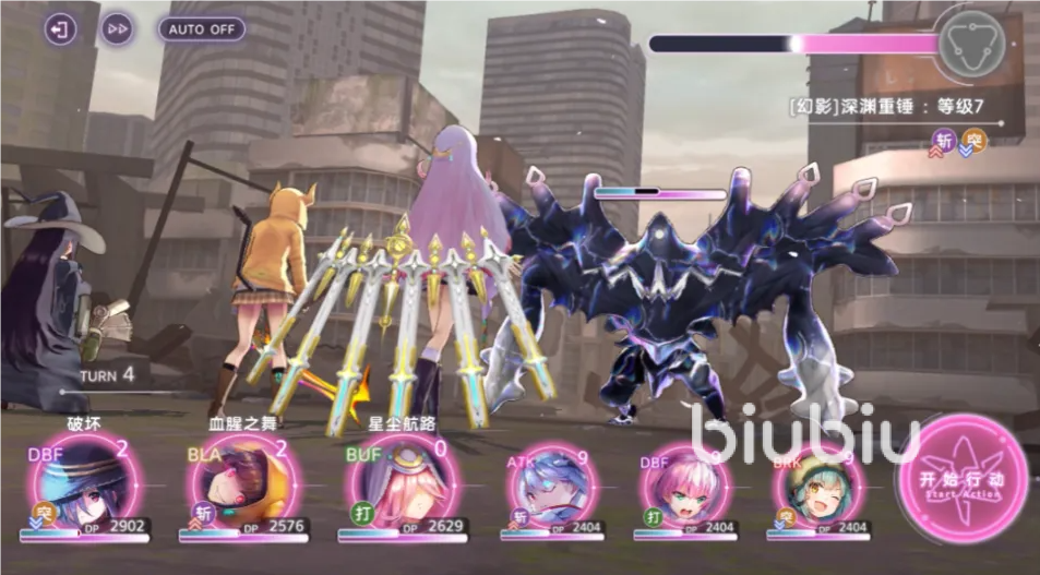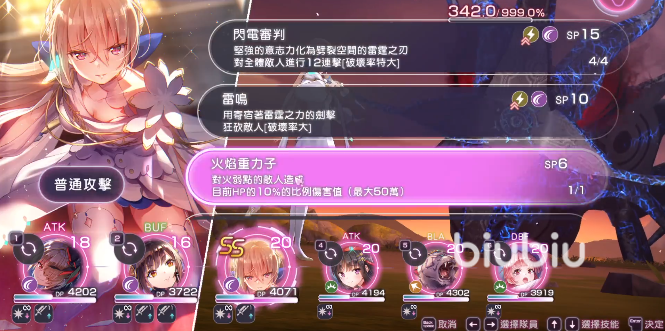 暗之回廊的配队思路就简单很多,只需要记住一个点就是尽量多带几个有aoe技能的角色就可以,但是这些有aoe技能的角色要尽量放在队伍的后排,这样可以通过关卡中拿到的+SP点数的buff提升他们技能的释放频率,这样一来可以提高这些角色的输出能力,可以让他们在这个关卡里面事半功倍,与此同时要另外带一个大招不属于暗属性的输出角色去打boss,比如一夜惠,他可以硬抗boss的伤害。