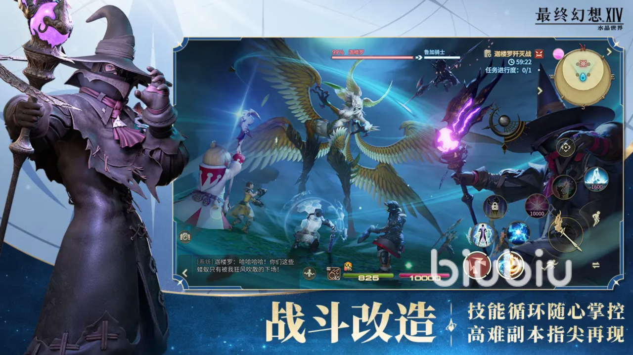 战斗系统为半即时制操作,采用技能轮盘+闪避机制的组合设计。每个职业保留了鲜明的战斗风格——例如龙骑士的连续跳跃突击、黑魔法师的冰火循环转换、诗人的演奏QTE玩法等。副本战斗方面,整体设计偏向中度操作难度,单局时间控制在10~15分钟之间,适合碎片时间参与挑战。