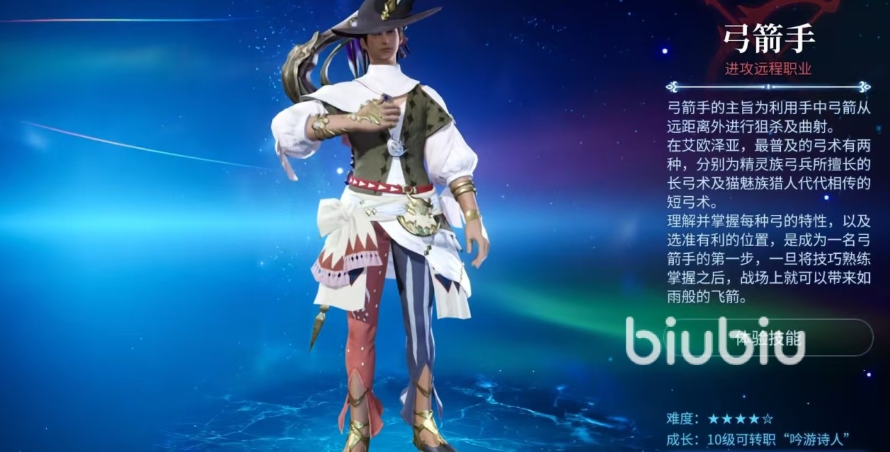 在成长到一定阶段后,可以通过转职来成为吟游诗人,这个职业拥有所有职业中独一无二的全团回复辅助技能,回蓝和回气,对于每个团队成员来说都非常关键。在属性方面主要的属性是灵巧,灵巧可以增加弓箭手的攻击力。总体来说,弓箭手的上手难度比较高,但转职成为吟游诗人之后,所具有的猛者强击、速行等技能可以给队伍带来大量的增益效果,是很多副本在开荒时的必备职业。