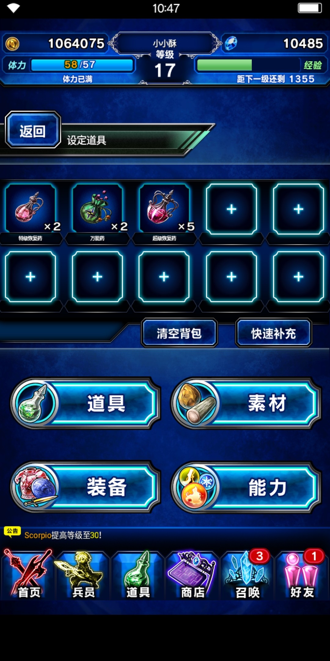 玩家在游戏中也可使用战斗道具来解除中毒状态,如解毒药或高星的万能药。当然啦,玩家应在队伍出发前在背包中配置好足量的解毒药物,方法是点击空白道具栏,随后添加药物即可。
