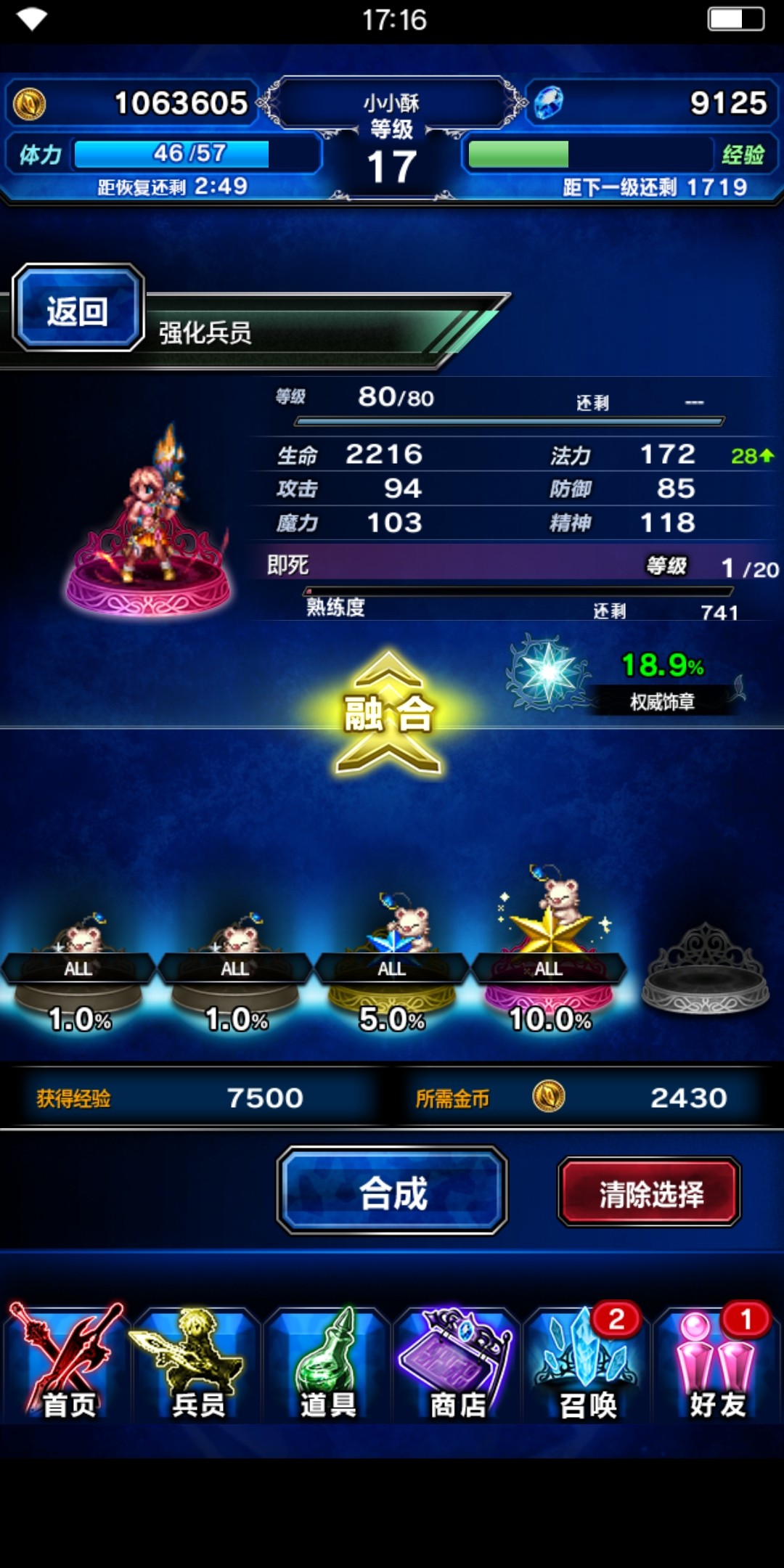 最后一种方法是融合莫古利,莫古利是强化兵员信赖度的专属道具,初级、中级和高级莫古利可分别增加兵员1%、5%和10%的信赖度。使用莫古利融合时要准备足够的金币哦,并且最多只能同时使用5只莫古利为兵员提高信赖度。