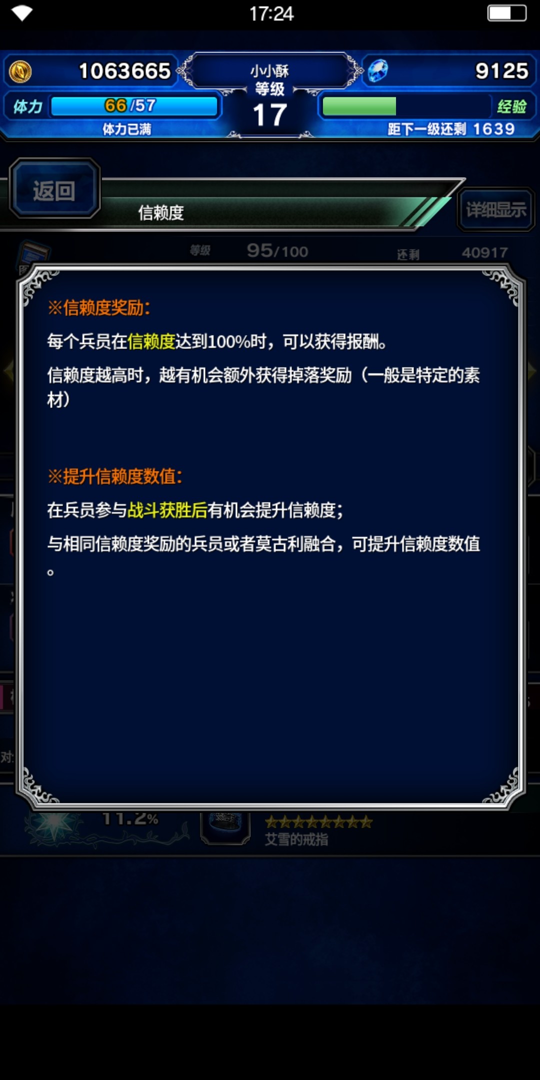 满额信赖度最主要的奖励是为兵员带来专属装备,这些专属装备不仅相当契合兵员的团队定位,而且可大幅增加兵员的各方面属性,如艾雪的戒指就能增加艾雪30%的法力值和魔力。