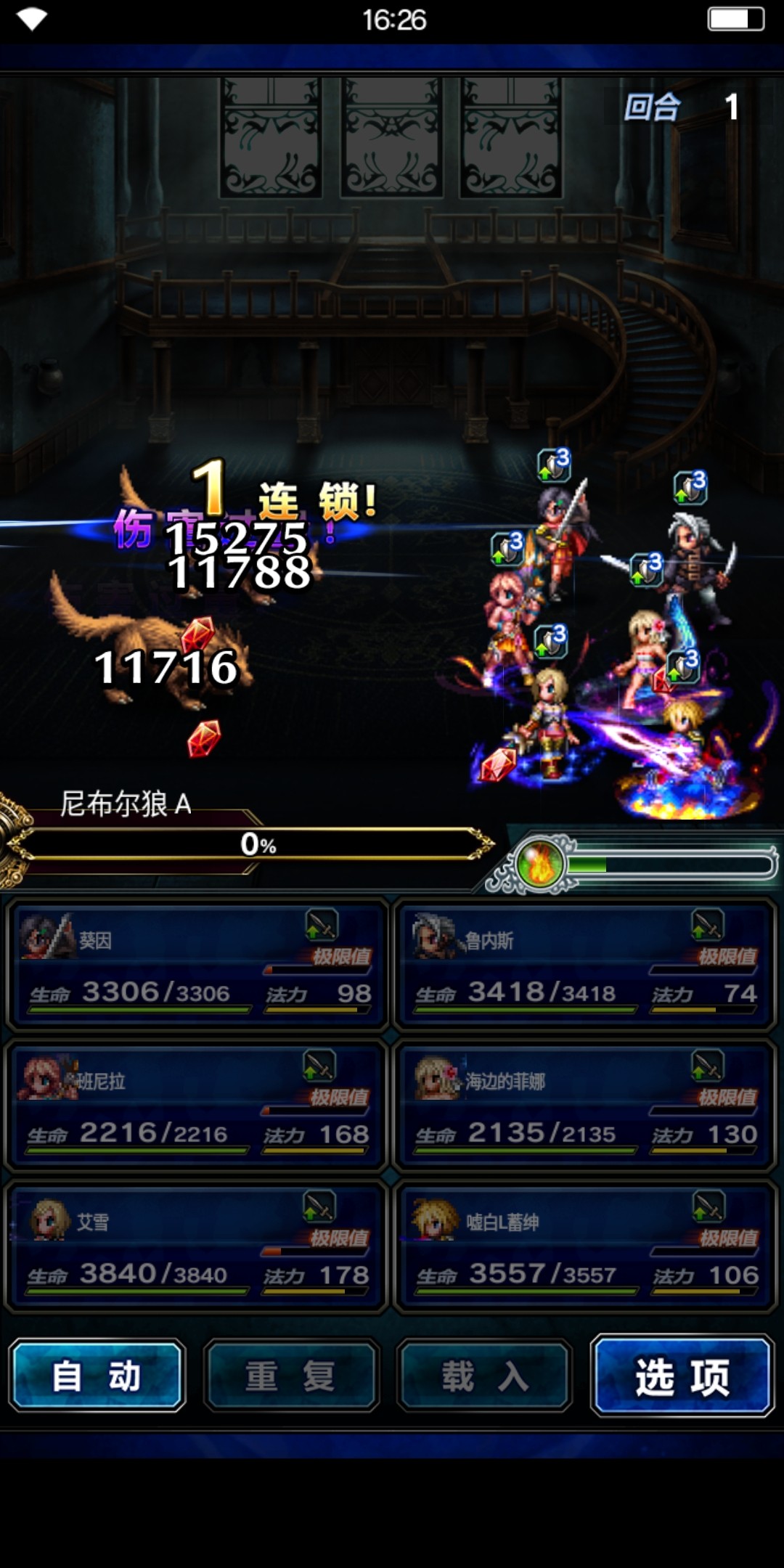 根据副本的难度等级,关卡可分为1~5个回合,除最后一个回合是boss关外,前面所有回合都是小怪。挑战前几个回合时用奶妈释放治疗技能,保证我方英雄血线健康,同时法师和战士持续进行输出,造成连锁伤害并回复极限值。