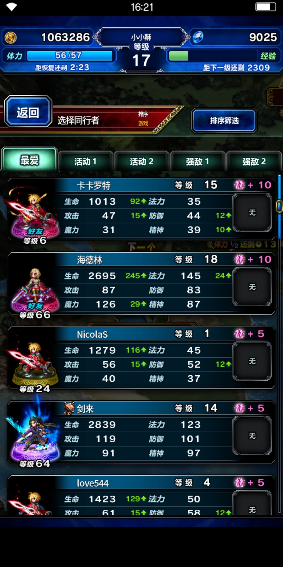 最后一项战前准备是同行者(支援英雄)和道具,同行者优先挑选那些等级高、装备齐全的英雄。而道具由于可在战斗中使用,因此玩家应根据敌我双方阵容挑选回蓝药、解毒药等针对性物品。