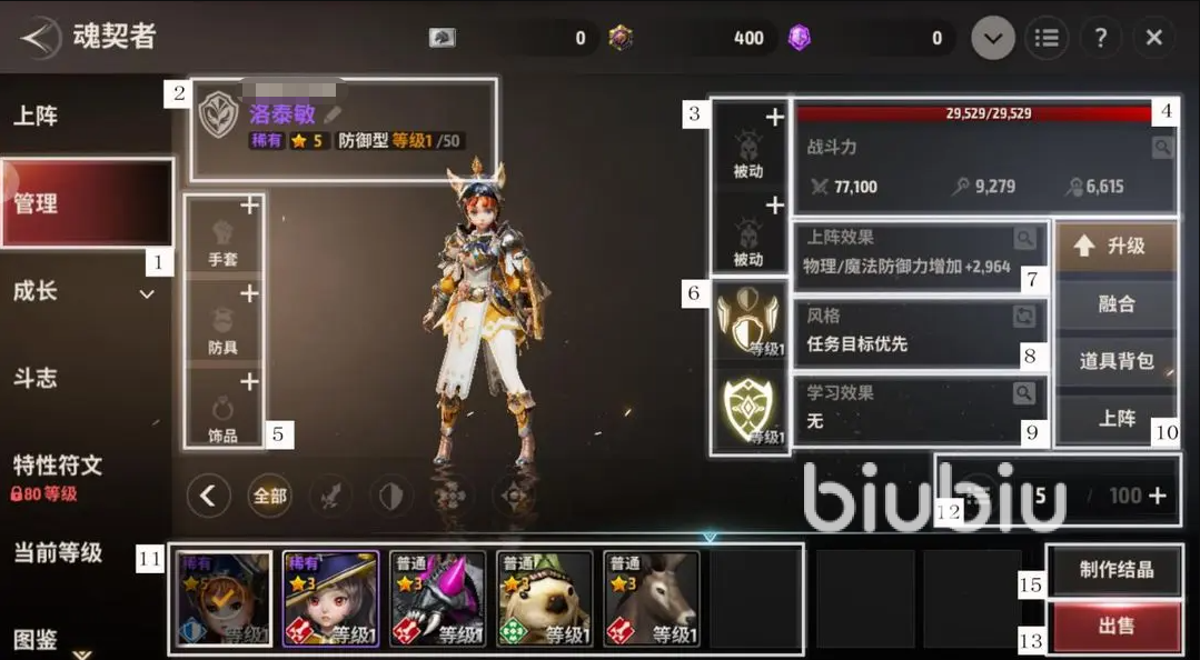 角色的被动技能可以在管理页面进行配置。根据角色的稀有度,每个角色最多可以装备2个与自身属性相同类型的被动技能,被动技能可以进行强化和升级来获得提升。