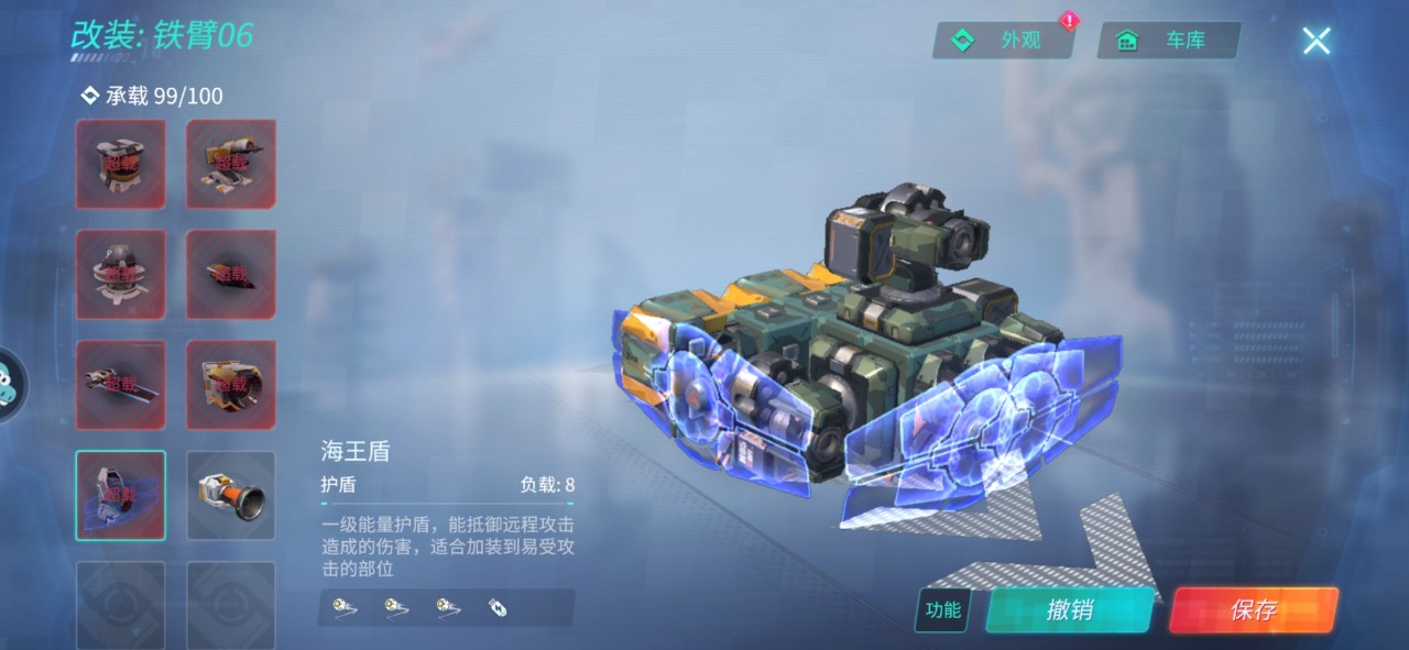 但是海王盾的缺点也非常明显,它的负载实在是太大了,足足占了8个单位。在标准战场上玩家的承载只有100,这就需要大家将海王盾用在最关键的地方。