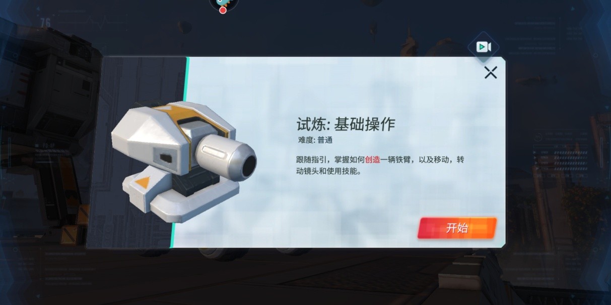 这里的基础试炼是非常容易的,主要就是教会玩家简单的游戏操作,如何创造一辆“铁臂” 。