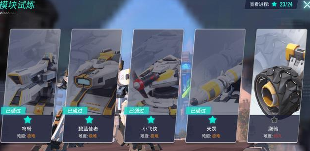 在刚进到游戏时,游戏玩家能够选择模块试练关卡,就等同于新人教程,打这一个教程能够了解各零部件的特效,还可以解锁一些零部件。通常打得14关以上,全部的玩法,都可以解锁,而小编同样是打过了24关的教程,此中有几关,确实是不简单。