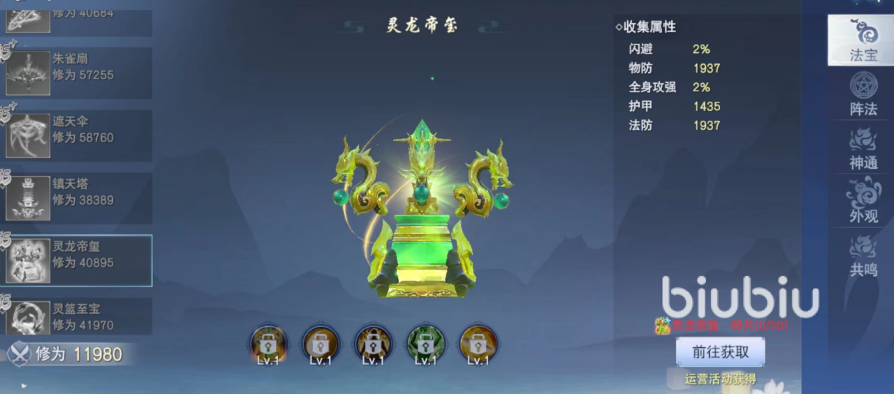 2023年01月31日 20:21 来源:心眼却末入蛾最近有部分小伙伴们对于主宰仙侠中法宝等装备有所好奇,想知道这些法器装备效果如何。那么今天就给大家带来一期主宰仙侠灵鉴大全,给大家分享一些法宝图鉴,帮助更多入坑的小伙伴们了解这个游戏中的武器效果如何。希望大家可以喜欢我们一起来看看吧!