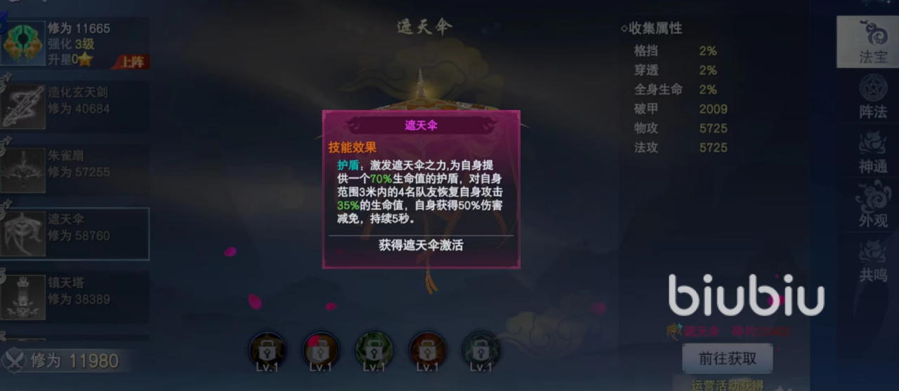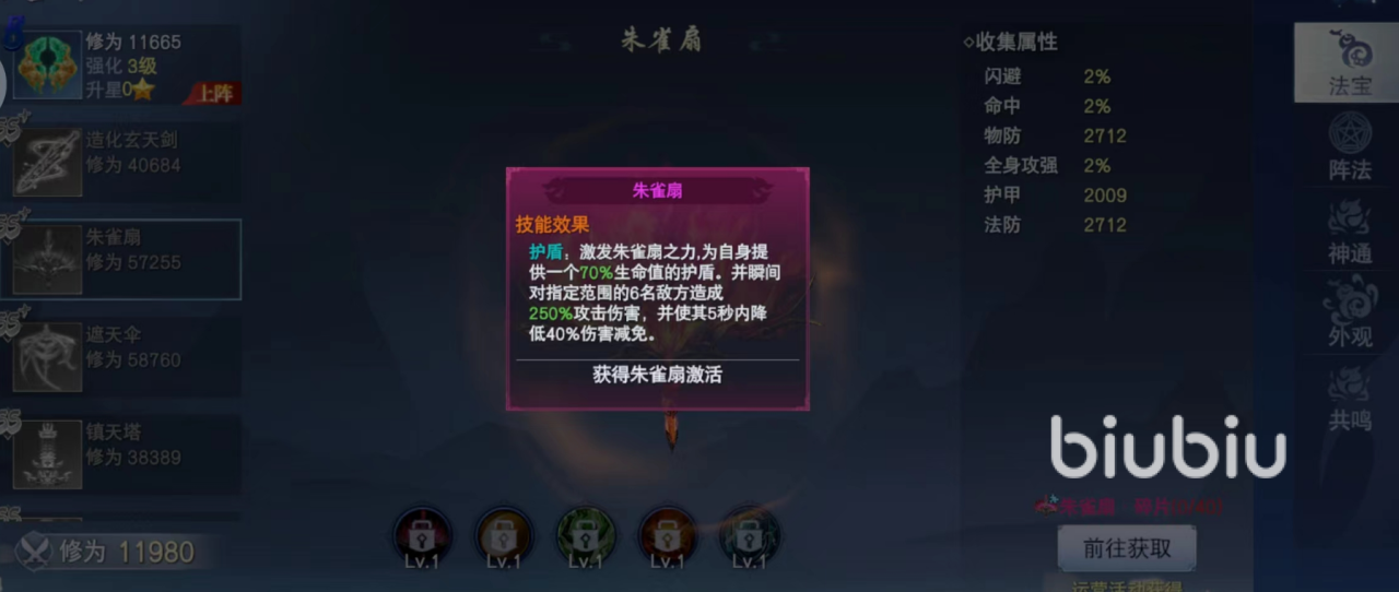 数值方面完全加了防御,技能方面则是较为的强力。除开高额的护盾不算,可以对指定范围内五名敌方造成自身攻击百分之25的伤害并降防。整体来说算是上面的朱雀扇的不完全下位替代,若是不喜欢朱雀扇的话,灵龙帝玺也是可以使用的。