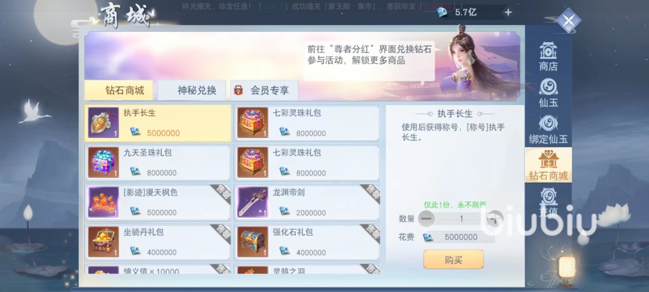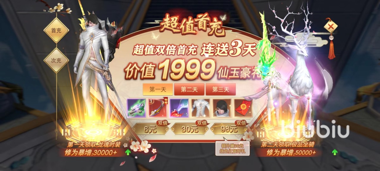 搞定了等级之后,还获取更多货币去购买道具,拍卖是个很好用的玩法,各种副本和boss战斗中获取到的装备,除了自己使用之外,在拍卖中换取元宝可以随时交易。通过各种支线主线以及其他开服奖励获取绑定仙玉,在黑市中兑换超值礼包,不要去商城直接购买,这里面折扣非常大。此外投资也不能错过,稍微充值一些然后买成长基金或是高级基金,此后每天都有大量仙玉和精魄等道具赠送,后续就不需要再充值。